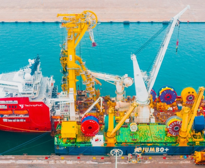 The collaboration between us and TechnipFMC, and the execution of the work was successful. The heavy lift vessels effectively transported the reels and equipment, overcoming geographical challenges and ensuring timely delivery. Close coordination with the client’s-chartered construction vessel facilitated smooth execution of delicate installation scopes.